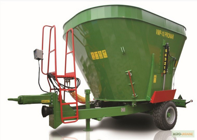 КормозмішувачPronar VMP-10 (Польща)Об’єм бункера 10м3, без верхньої надставки 8м3;Габарити (довжина/ширина/висота): 4860/2550/2670 (мм);Вантажопідйомність 4000 кг;Кількість ножів: 9 ріжучих на шнеку і 2 протиріжучі (для досягнення рівномірного подрібнення). Зроблені із хромо-ванадієво-вольфрамової с...