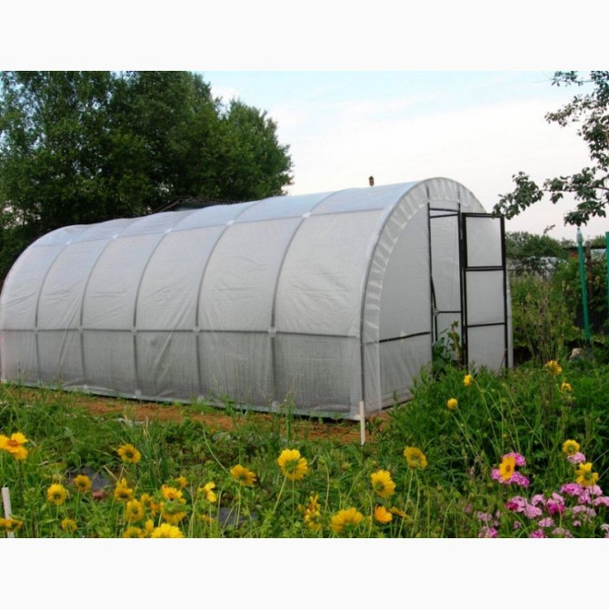 Переваги армованої плівки: 1. **Матеріал**: Чохол із армованої плівки, у якій у поліетилен вплавлена поліпропіленова сітка, набагато міцніший, ніж звичайний. Його можна розтягнути на велику теплицю і не боятися ні вітру, ні граду. У разі проколу плівка легко відновлюється, оскільки армуючий шар утр...