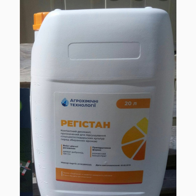 Препарат Регістан застосовується для підсушування сільськогосподарських культур перед збором урожаю. Десикант проявляє контактну дію, швидко проникає в культуру через листя, обезводнюючи її, що призводить до повного висихання рослини. Регістан сприяє ефективному і рівномірному дозріванню урожаю, нез...