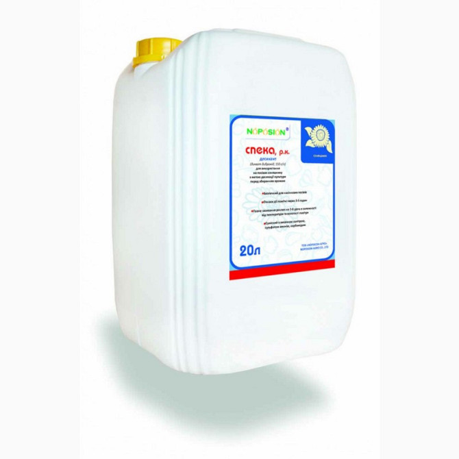 **Десикант "Спека" для захисту культурних рослин** Десикант "Спека" - це контактний препарат, який застосовується для захисту таких культур, як соняшник, горох, зернові, рис, льон, ріпак ярий та озимий, буряк цукровий, столовий, кормовий, картопля, цибуля, хміль та інші. Цей препарат є безпечним дл...
