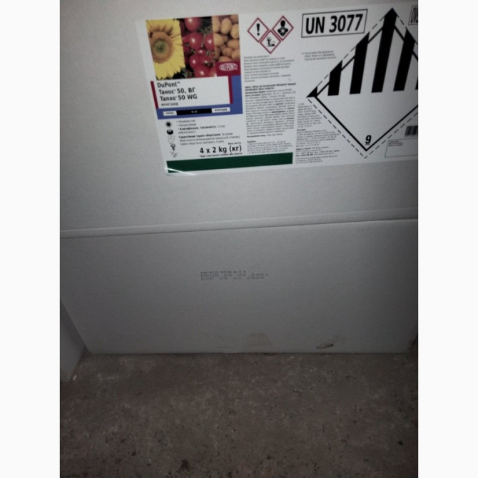 Танос® - Двокомпонентний фунгіцид профілактичної, лікувальної та антиспоруляційної дії для захисту від хвороб соняшнику, винограду, картоплі, томатів та цибулі. Діючі речовини: цимоксаніл – 250 г/кг, фамоксадон – 250 г/кг. Препаративна форма: водорозчинні гранули. Норма використання: 0,4 – 0,6 кг/...