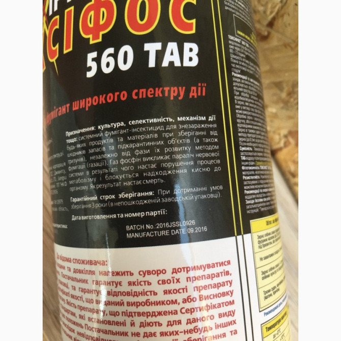 Інсектицидний фумігант для газації запасів - ТОКСІФОС 560 ТОКСІФОС 560 - це інсектицидний фумігант, що містить фосфід алюмінію у концентрації 560-580 г/кг. Цей газогенеруючий засіб призначений для боротьби з шкідниками, які можуть перебувати як у відкритому, так і в прихованому стані, незалежно від...