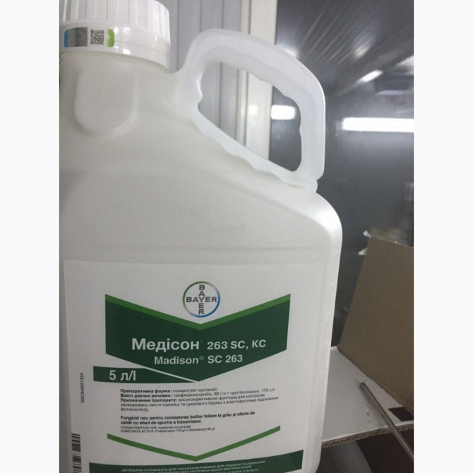 **Медісон® - Новий фунгіцид для захисту пшениці та цукрового буряка** Медісон® - новий двокомпонентний фунгіцид від компанії Bayer (Байєр), Німеччина, з системними властивостями. Діючі речовини: протіоконазол 175 г/л, трифлоксістробін 88 г/л. Препаративна форма: концентрат суспензії. Медісон® має д...