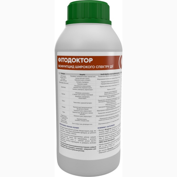 **Фітодоктор** - біологічний фунгіцид широкого спектру дії для профілактики та лікування комплексу хвороб сільськогосподарських, плодово-ягідних, овочевих та декоративних культур, викликаних фітопатогенними грибами та бактеріями. Склад препарату: живі клітини та спори бактерії *Bacillus subtilis* в...