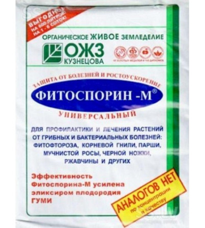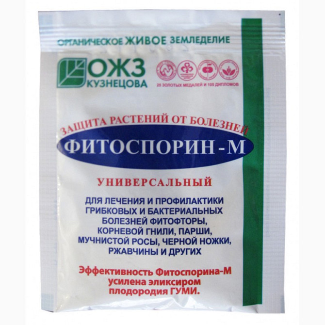 Фітоспорин-М порошок - це мікробіологічний препарат, призначений для захисту огородних, садових, кімнатних та оранжерейних рослин від комплексу грибкових та бактеріальних захворювань, таких як фітофтороз, коренева гниль, парша, мучниста роса, чорна ніжка, ржавчина, альтернаріоз, фузаріоз та інші. Кр...