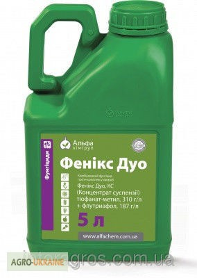 Фунгіцид "Фенікс Дуо" є інноваційним двохкомпонентним системним препаратом з широким спектром активності, призначеним для захисту рослин від комплексу поширених хвороб. Діючі речовини у складі препарату: флутриафол (187 г/л) та тіофанат-метил (310 г/л). Формулювання - концентрат суспензії. Об'єм тар...