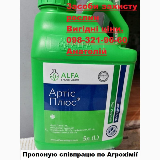 **Артіс Плюс** Призначення: Артіс Плюс - це новий трикомпонентний системно-трансламінарний фунгіцид, який призначений для інтенсивного захисту від комплексу поширених хвороб. **Склад:** - Міклобутаніл 125 г/л - Тебуконазол 125 г/л - Тіофанат-метил 250 г/л **Форма випуску:** Тара 5 л **Властивост...