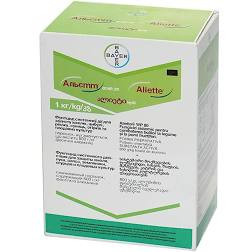 **Фунгіцид Альетт для Боротьби з Хворобами Рослин** **Характеристики:** - **Назва:** Альетт - **Діюча речовина:** фосетил алюмінію, 800 г/кг - **Препаративна форма:** Порошок, який змочується - **Характер дії пестициду:** Вибірковий - **Тип впливу на організм:** Системний - **Хімічний склад:** Неор...