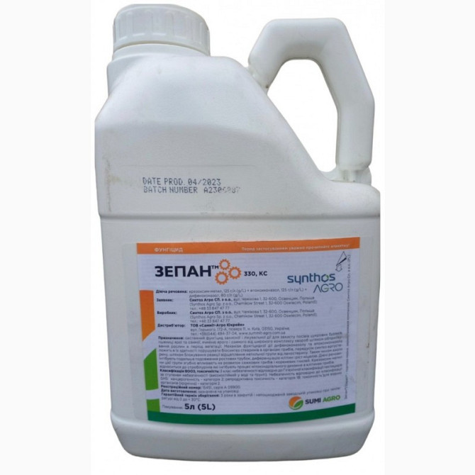 Фунгіцид ЗЕПАН - надійний захист від хвороб у посівах пшениці, сої, соняшнику та цукрового буряка. **Склад**: - крезоксим-метил, 125 г/л - епоксиконазол, 125 г/л - дифеноконазол, 80 г/л **Форма випуску**: концентрат суспензії **Механізм дії**: трансламінарний + системний + локально-системни...