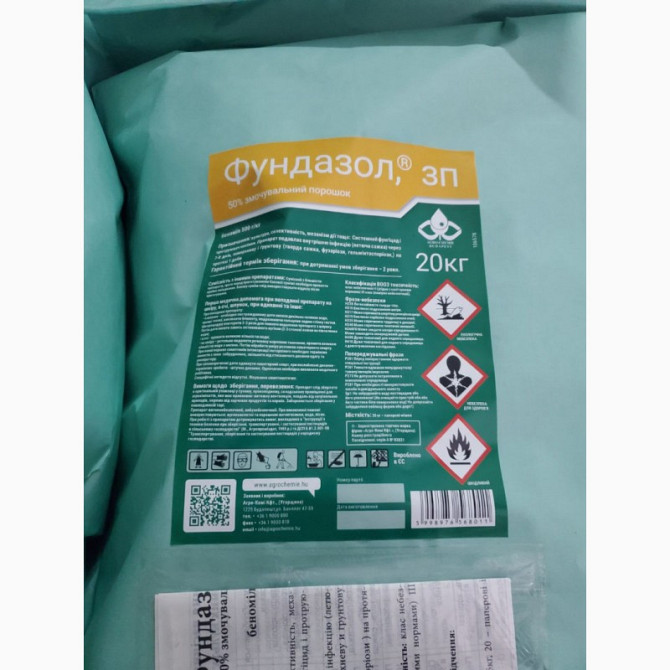 **Фундазол** - універсальний системний фунгіцид для обробки вегетуючих рослин і протруювач насіння різних культур. - **Діюча речовина**: 500 г/кг беном. - **Форма препарату**: Порошок, що змочується. - **Хімічна група**: Бензимідазоли. - **Клас токсичності**: ІІ клас (небезпечний для людини, теплок...