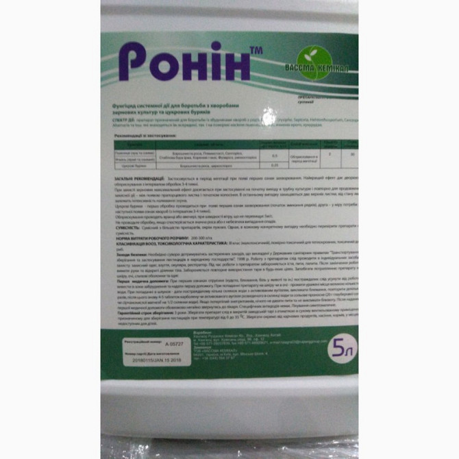 Фунгіцид Ронін (аналог Імпакт) призначений для боротьби з широким спектром патогенів та інфекцій, гарантує захист від хвороб протягом усього вегетаційного періоду. Діюча речовина: флутріафол 250 г/л Тип: системний Форма випуску: каністра 5л Ціна: вказана за 1л Призначений для таких культур як: пш...