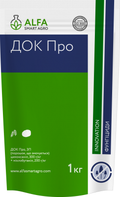 Док Про є інноваційним двокомпонентним фунгіцидом з профілактичним, лікувальним та антиспоруляційними властивостями для контролю комплексу грибкових захворювань. Діючі речовини: Цимоксаніл - 300 г/кг та міклобутаніл - 200 г/кг. Формулювання: порошок, що змочується. Рекомендовано для культур: картопл...