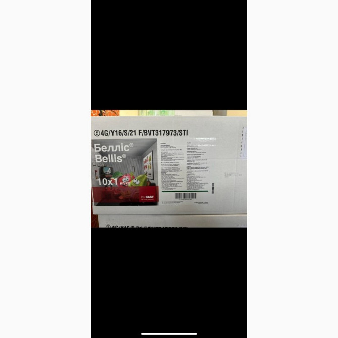 **Фунгіцид Белліс для захисту яблук від хвороб зберігання** **Характеристики:** - **Тип:** локально-системний + системний фунгіцид - **Препаративна форма:** гранули, що диспергуються в воді - **Діючі речовини:** піраклостробін (128 г/кг) + боскалід (252 г/кг) - **Норма витрати:** 0,8 кг/га - **Куль...