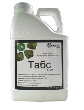 **Фунгіцид Табс для Інтенсивного Вирощування Ріпаку, Зернових та Винограду** **Тип дії:** Системний **Виробник:** Ранголі **Діюча речовина:** Тебуконазол 250 г/л **Препарат оригінал:** Фолікур **Тарна одиниця:** 5 л (ціна вказана за каністру) **Культура:** Ріпак, Виноградники, Зернові *...