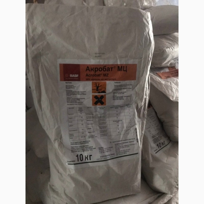 **Фунгіцид Акробат від BASF** **Застосування:** Акробат - це сильний фунгіцид контактно-системної дії від BASF, призначений для захисту від збудників фітофторозу картоплі та томатів, пероноспорозу цибулі та огірків, мілдью винограду та несправжньої борошнистої роси хмелю. **Характеристики:** - **Н...