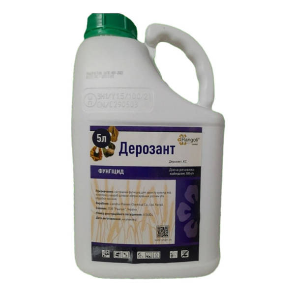 Дерозант (Дерозал) - високоефективний контактно-системний фунгіцид, що застосовується в посівах зернових культур з метою лікування та профілактики грибкових захворювань. Препарат проникає у частини рослини, що вегетують, блокує процес поділу клітин у спорах грибів і зупиняє їх розвиток, що призводит...