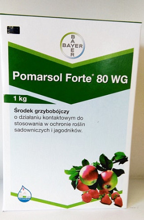 Pomarsol Forte 80 wg (Помарсол Форте) - контактний фунгіцид від парші та сірої гнилі. Pomarsol Forte - це фунгіцид у формі гранул для приготування водної суспензії для захисту рослин і садів від грибкових захворювань, парші та сірої гнилі плодів. Рекомендується для використання під час росту бруньок...