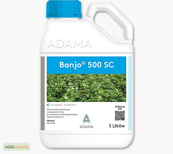 Додаткова інформація. Фунгіцид Банджо - контактний фунгіцид для захисту картоплі та томатів від фітофторозу і альтернаріозу, а також лука від переноспорозу. Діюча речовина: Флуазинам, 500 г/л. Хімічна група: Динітроаніліни. Розподілення в рослині (або спосіб дії): Контактний. Форма випуску: КС (кон...