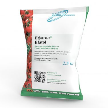 **ЕФАТОЛ** *Системний фунгіцид профілактичної та захисної дії для захисту винограду, зерняткових, овочевих та технічних культур від збудників найбільш шкідливих захворювань – несправжньої борошнистої роси, парші, фітофторозу.* **Характеристики:** - **Діюча речовина:** фосетил алюмінію, 800 г/кг - ...