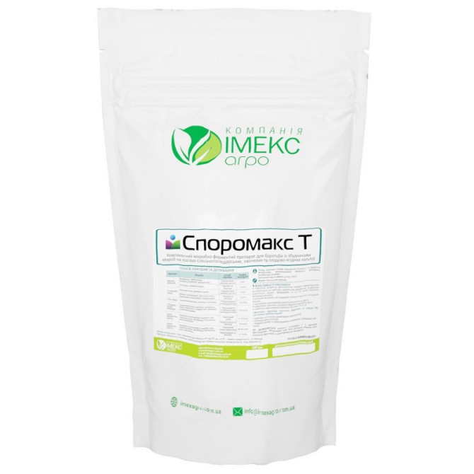 Біофунгіцид СпороМакс™ Т є комплексним мікробно-ферментним препаратом, призначеним для боротьби з хворобами на посівах сільськогосподарських, овочевих та плодово-ягідних культур. Діюча речовина: Комплекс штамів Trichoderma harzianum та продукти їх метаболізму, такі як целюлозолітичні ферменти, фіт...