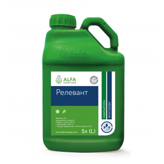 Фунгіцид Релевант є трикомпонентним препаратом для боротьби з грибковими та бактеріальними захворюваннями в культурах соняшнику, сої та ріпаку. У складі міститься тіофанат-метил (375 г/л), цимоксаніл (225 г/л) та продукт ферментації Актиноміцетів (5 г/л). Препарат виготовлено у формі концентрату сус...