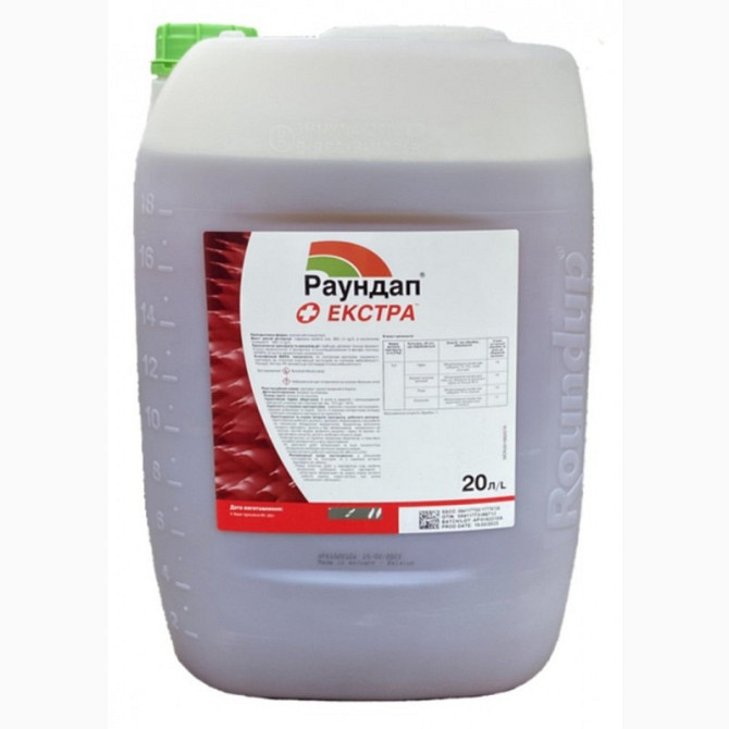 **Раундап® Екстра** **Діюча речовина:** 540 г/л гліфосату у кислотному еквіваленті (663 г/л у формі калійної солі гліфосату). **Препаративна форма:** розчинний концентрат. **Виробник:** Байєр. **Тара:** каністри 20 л, ціна вказана за каністру. **Механізм дії:** Раундап® Екстра є системним гербі...