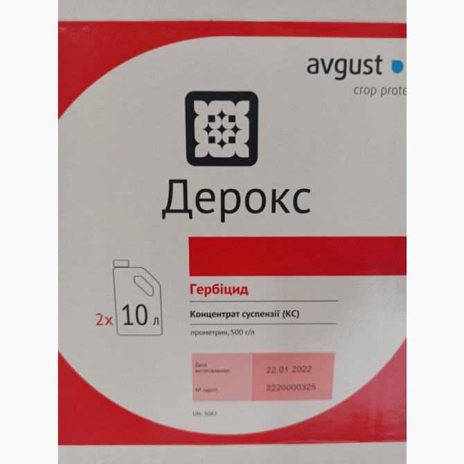 Гербіцид Дерокс є грунтовим препаратом для ефективного усунення однорічних дводольних і злакових бур'янів у вирощуванні моркви, гороху, сої, соняшнику та картоплі. Вміст діючої речовини у складі препарату становить прометрин у концентрації 500 г/л. Дерокс представлений у формі концентрату суспензії....