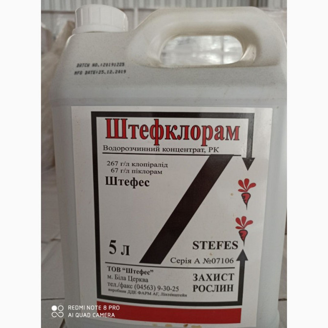**Штефклорам** - селективний системний гербіцид для контролю однорічних дводольних та багаторічних коренепаросткових бур'янів у посівах ріпаку. **Характеристики:** - **Діюча речовина:** клопіралід (267 г/л) + піклорам (67 г/л) - **Препаративна форма:** розчинний концентрат - **Виробник:** Stefes - ...