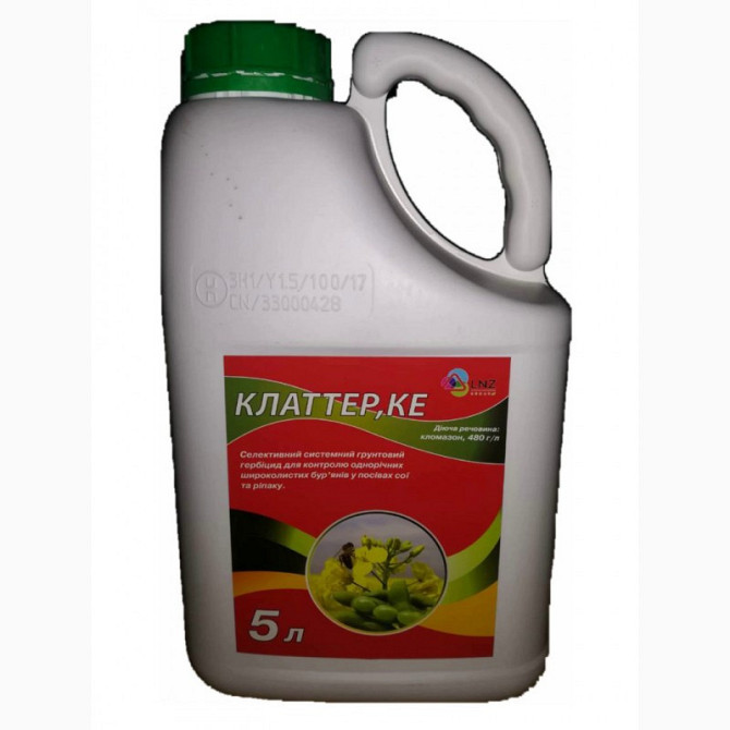 **Клаттер - Селективний системний грунтовий гербіцид для контролю однорічних широколистих бур’янів у посівах сої та ріпаку** **Препаративна форма:** Концентрат емульсії **Вміст діючої речовини:** кломазон 480 г/л **Токсичність:** 3-й клас (помірно небезпечний) **Виробник:** DEFENDA **Тара:** ка...