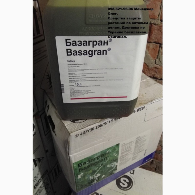 Гербіцид БАЗАГРАН® від компанії Basf - це ефективний засіб для захисту рослин від бур'янів. Пропонуємо оптові ціни на цей продукт зі складу в місті Києві. У нас в наявності лише оригінальні засоби захисту рослин. **Назва:** БАЗАГРАН® **Форма:** Водний розчин (ВР) **Склад:** 480 г/л бентазон ...