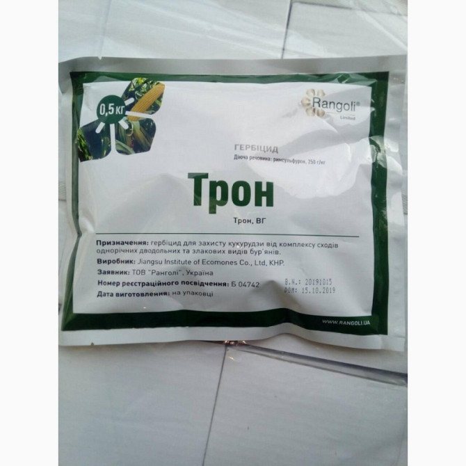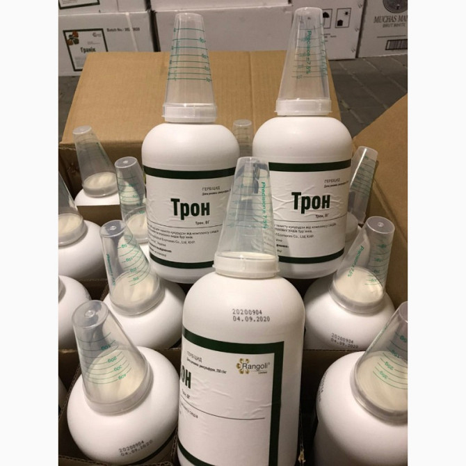 **Гербіцид Трон (аналог Тітус)** **Опис:** Гербіцид Трон є високоефективним післясходовим засобом для контролю комплексу багаторічних та однорічних злакових і однорічних дводольних бур'янів у посівах кукурудзи, томатів та картоплі. Діюча речовина - римсульфурон (250 г/кг), форма препарату - водороз...