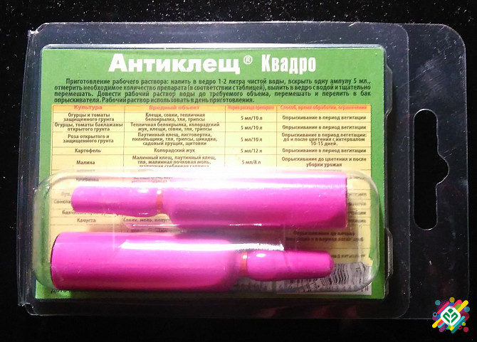 Інсекто-акарицид контактної дії для захисту плодових та декоративних культур від кліщів. Упаковка: 10 мл і 100 мл. Форма препарату: концентрат, емульсія. Характеристика та переваги: - Висока ефективність дії; - Широкий спектр захисної дії; - Універсальний в застосуванні (контактна та кишкова дія). Д...