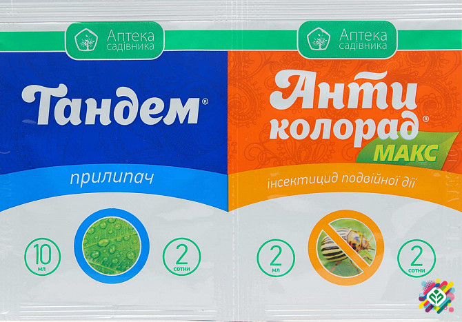 Мінімальне замовлення - 350 грн. Упаковка 100 мл, 12 (антиколорад + тандем). Високоефективний контактно-системний інсектицид подвійної дії з клейкою речовиною, що бореться з широким спектром шкідників сільськогосподарських культур. Діюча речовина: імідаклоприд - 300 г/л + лямбда-цигалотрин 100 г/л ...
