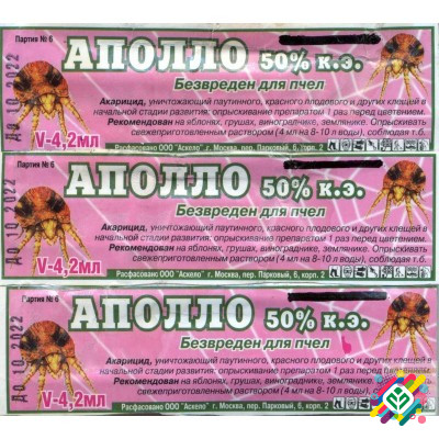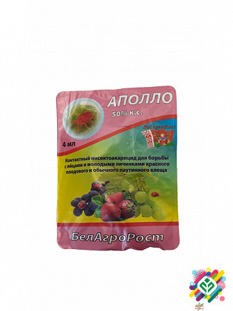 Це контактний селективний препарат від кліщів, належить до інсектицидів специфічної дії, призначений для боротьби з павутинними та плодовими кліщами на винограді, плодових культурах та полуниці. Інсектицид Аполло діє на яйця, а також на рухомі ранні стадії павутинних кліщів, для дорослих кліщів він ...
