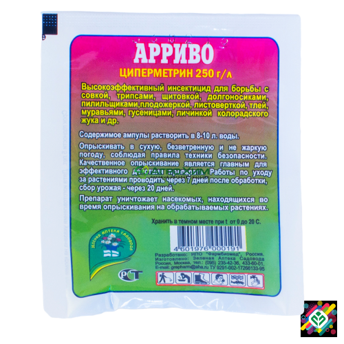 Високоефективний інсектицид «Арриво» призначений для боротьби з широким спектром шкідників комах на всіх сільськогосподарських культурах. Цей інсектицид активно діє вже при невеликих дозах, вбиваючи комах вже через 24 години після обприскування, і захищає рослини на тривалий час. Препарат є нефітото...