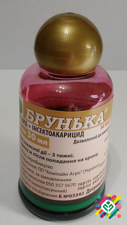 **Універсальний препарат для обробки плодових та декоративних дерев, виноградників та ягідних кущів до початку розпускання бруньок проти зимуючих стадій хвороб та шкідників.** Препарат **Брунька 30 мл** - контактний інсектоакарицид та фунгіцид, що складається з трьох основних діючих речовин: лямбда...
