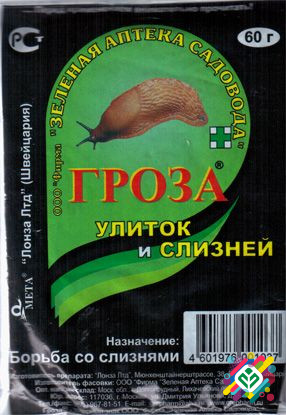 Мінімальна сума замовлення - 300 грн. Препарат "Гроза" - найбільш ефективний та єдиний засіб проти слизнів та улиток! "Гроза" - гранульований препарат для боротьби з голими слизнями та улитками на овочевих, ягідних, плодових, квіткових культурах та винограді. Властивості: Гранули препарату "Гроза...