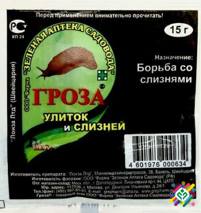 Мінімальна кількість - від 2 шт. Мінімальна сума замовлення - 300 грн. Гранульований препарат "Гроза" є найбільш ефективним та єдиним засобом проти слизнів та улиток! Гранульований препарат для боротьби з голими слизнями та улитками на овочевих, ягідних, плодових, квіткових культурах та винограді. В...
