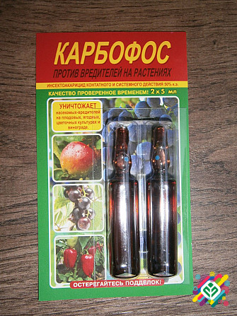 Карбофос належить до групи помірно токсичних пестицидів і використовується для боротьби з такими шкідниками, як тля, довгунець, шкідливий бублик, павутинний кліщ, листові клопи, білокрилки, комахи-щитівки, мушки-мучниці та інші шкідники, які завдають шкоду плодовим, ягідним, овочевим, цитрусовим кул...