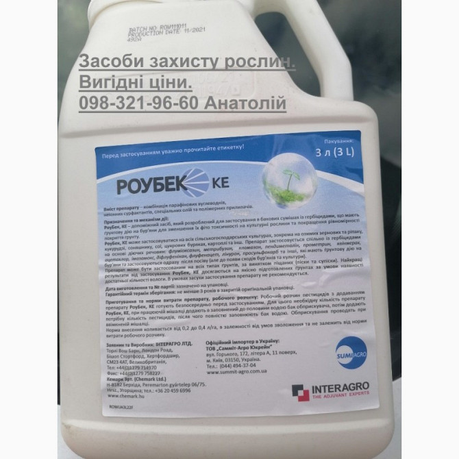 Роубек - це ад'ювант для ґрунтових гербіцидів, які використовуються на чутливих культурах. О98-321-9б-б Олег, який є менеджером, може надати вам додаткову інформацію. Переваги препарату включають: - покращення рівномірності покриття оброблюваної поверхні; - зменшення кількості дрібних крапель та їх...