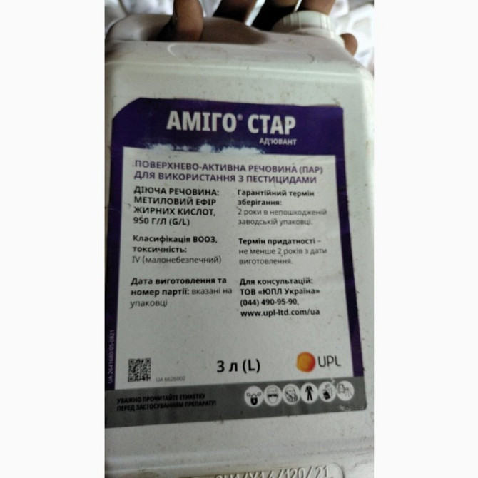 Прилипач Аміго Стар UPL - неіонний ад’ювант (ПАР) на основі рослинної олії, призначений для поліпшення розтікання та проникнення робочого розчину в рослину, а також для сповільнення його висихання на листковій поверхні. Вміст діючої речовини становить 94%, що є сумішшю метилових ефірів жирних кислот...