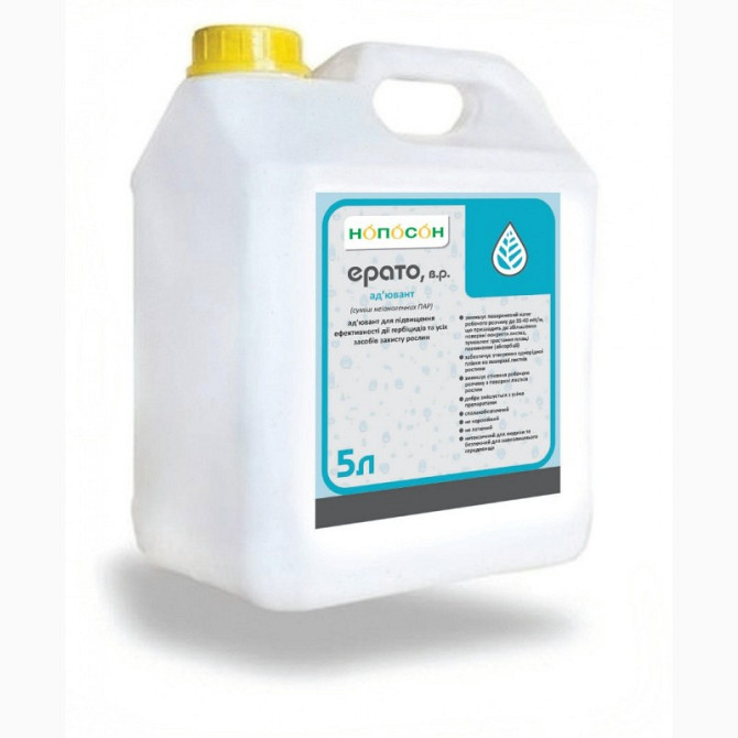 **Ерато® АДЪЮВАНТ ДЛЯ ПІДВИЩЕННЯ ЕФЕКТИВНОСТІ ДІЇ ГЕРБІЦИДІВ** **Склад:** - Діюча речовина: неіоногенні ПАВ - Препаративна форма: водний розчин - Хімічна група: ПАВ - Упаковка: 5 л **Переваги:** - Зменшує поверхневе натягання робочого розчину до 35-40 мН/м, що призводить до збільшення площі покрит...