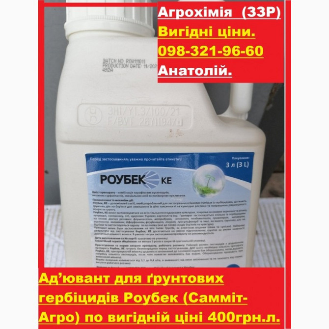 Розпродаж! Суперціна! Прилипач Ад'ювант Роубек Самміт Агро - 400 грн/л. Роубек є одним з ад'ювантів, який адаптований для використання в сільському господарстві та в культурах картоплі разом з ґербіцидами, які мають дію на бур'яни у ґрунті. При застосуванні препарату: поліпшується рівномірність пок...