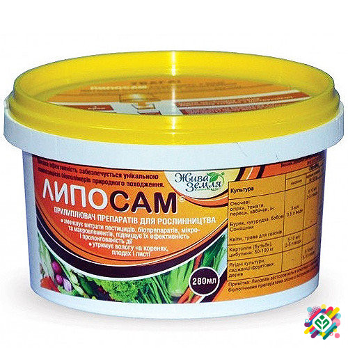 **ЛІПОСАМ®** - Біоклей для запобігання розтріскування плодів технічних і бобових культур. **Склад:** Липкогенна композиція біополімерів природного походження з клейовими властивостями. **Упаковка:** 10 л, ціна вказана за каністру. **Ефект від використання:** - утворює гнучку еластичну сітку здатн...