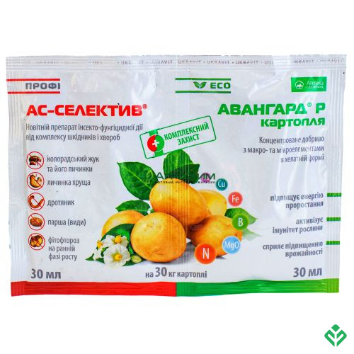 Засіб інсектицидно-фунгіцидної дії для посадкової обробки картоплі та овочевих культур проти комплексу шкідників та хвороб. Захищає від шкідників: колорадський жук і його личинки, проволочник, личинки жуків, тли, трипси, цикадки, молі, медведки, блошки. Хвороби: альтернаріоз, ризоктоніоз, фітофтороз...