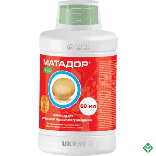 Системний інсектицид контактно-кишкового дії. Діє на центральну нервову систему шляхом блокування передачі нервового імпульсу в організмах шкідників. Хімічна група протравника Матадор: Неонікотиноїди. Діюча речовина протравника Матадор - імідаклоприд, 200 г/л. Сумісність протравника Матадор: Сумісни...