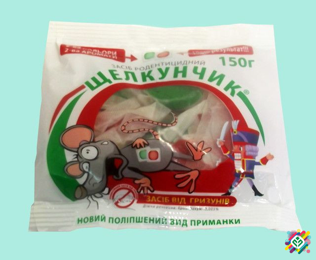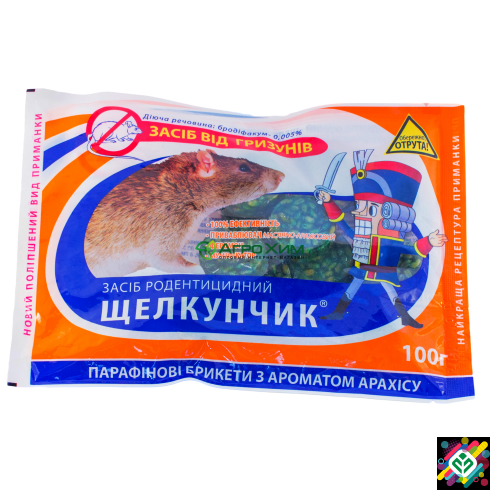 "Щелкунчик" є родентицидним засобом для боротьби з гризунами (мишами та крисами), які заважають ефективно вести сільське господарство або оселяються в будинках. Препарат виготовляється на основі діючої речовини бродифакум у концентрації 0,005%. При правильному застосуванні "Щелкунчика" його дія пом...