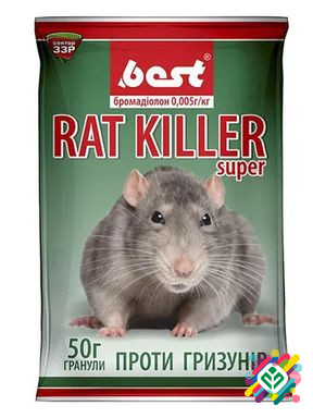 Рат Кілер - це високоефективна гранульована приманка, готова до використання. Призначена для 100% знищення крис, мишей у житлових та нежитлових приміщеннях, а також на ділянках. Препарат Рат Кілер містить бродіфакум (отрута), муміфікатор, феромон та харчові компоненти. Приманка є дуже привабливою дл...