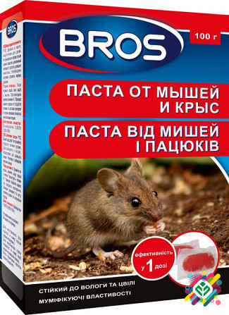 Паста від мишей та крис Bros є стійкою до плісняви і вологості, тому може бути використана при будь-якій температурі та вологості: у холодильних камерах, підвалах, господарських спорудах. Кожна порція у індивідуальній упаковці, яку не можна відкривати. Муміфікуючі властивості: відсутність неприємног...