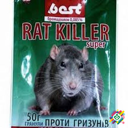Засіб для знищення сірих і чорних пацюків, сусликів, полявок, а також домашніх мишей у житлових, нежитлових та промислових приміщеннях, сільськогосподарських угіддях та полях. Завдяки унікальній технології змішування інгредієнтів отримується однорідний за складом і зовнішнім виглядом ароматизований,...